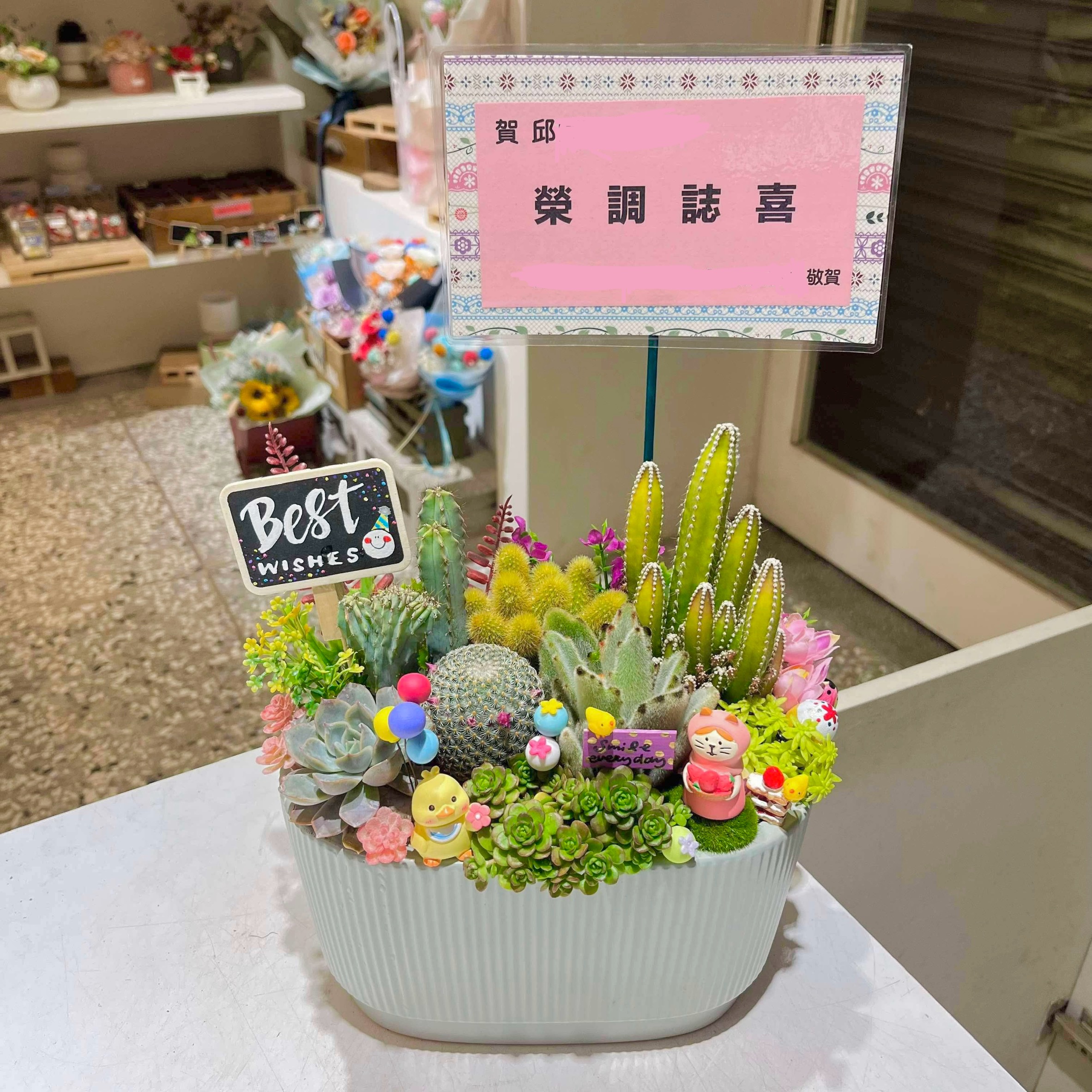 ► 我們會依各種不同情況設計公仔裝飾,可在Line中告知需求,例如開幕的店種類、提供裝潢照片,升遷用途者可告知收件人職務性質等資訊。