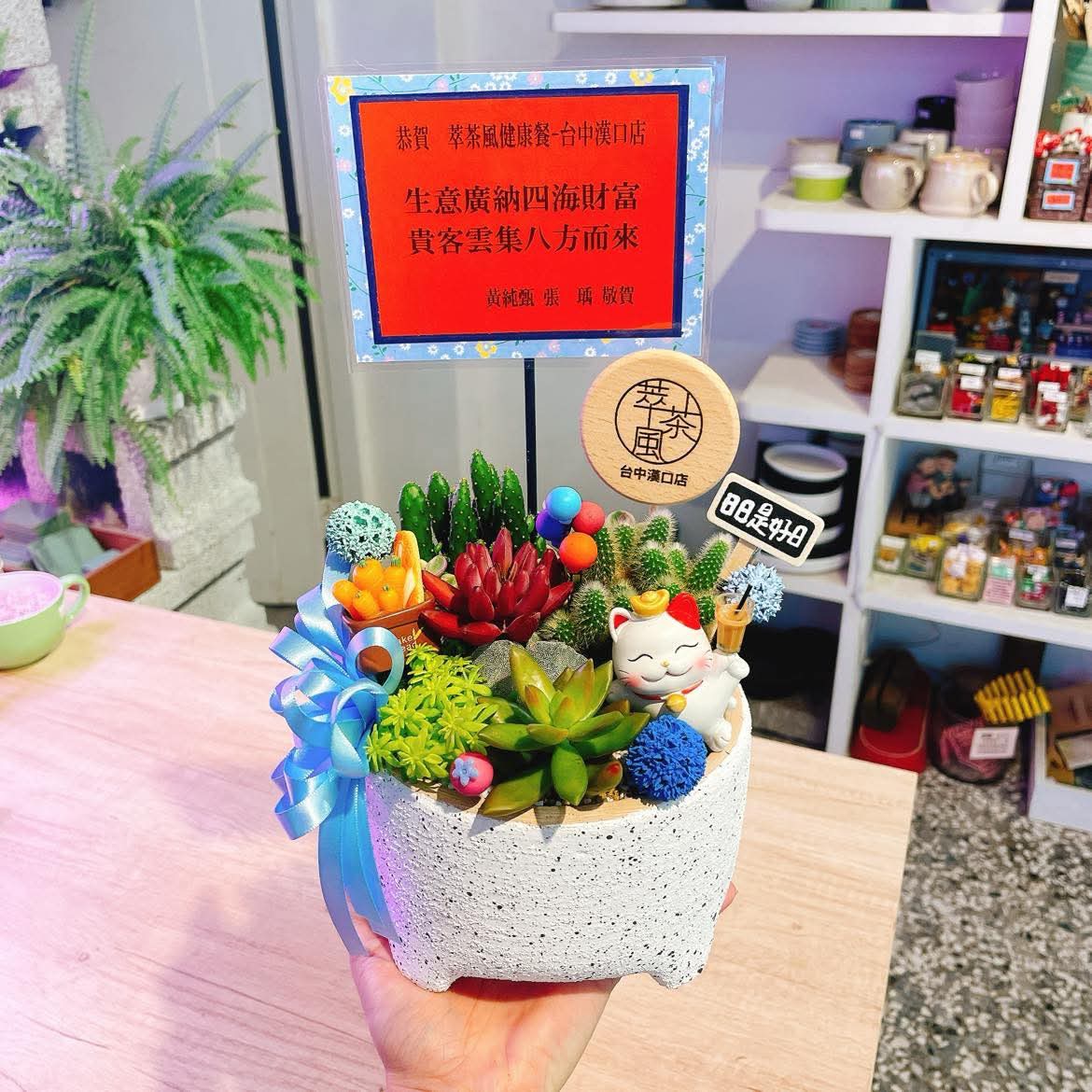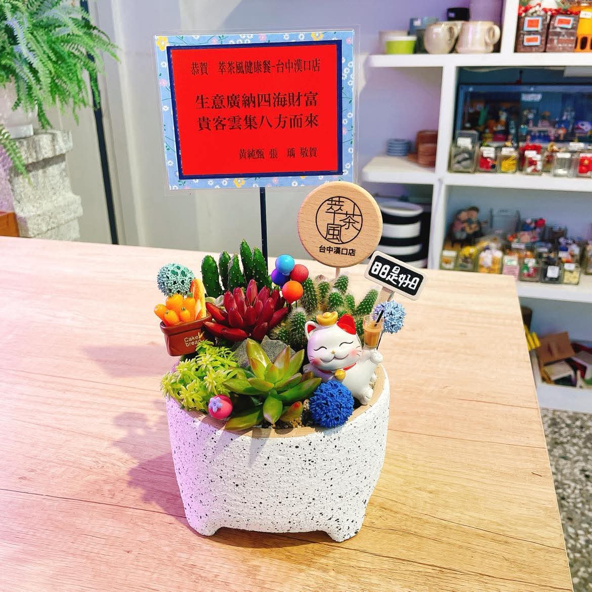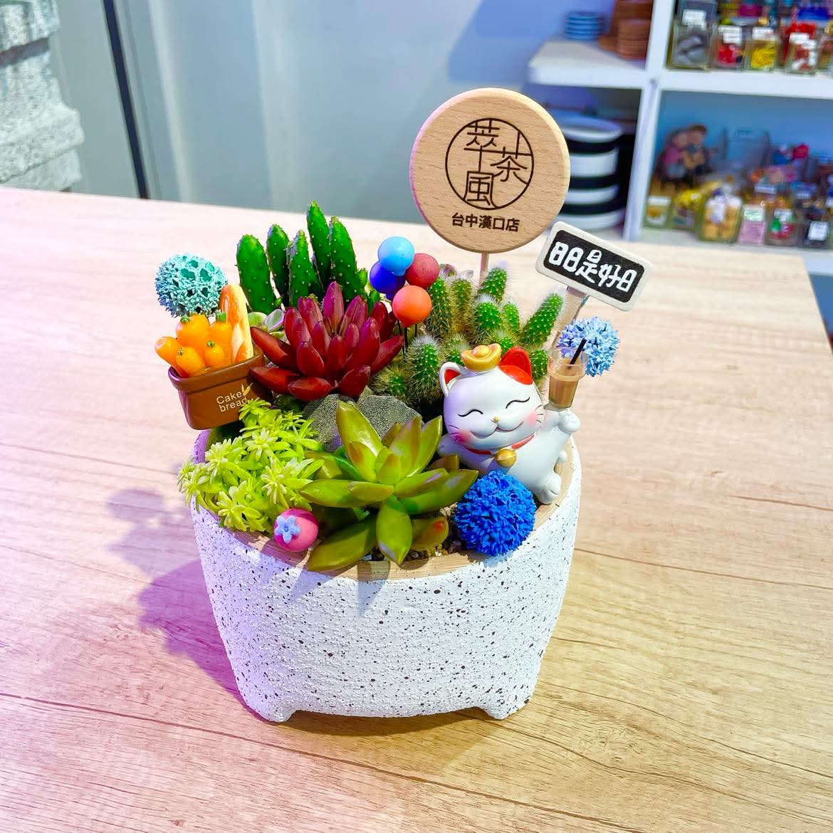► 植物會使用多肉、仙人掌和少許仿真花(仿真花約佔5-10%),也可選擇使用發財樹當主植物。若有特殊要求可在Line告知。