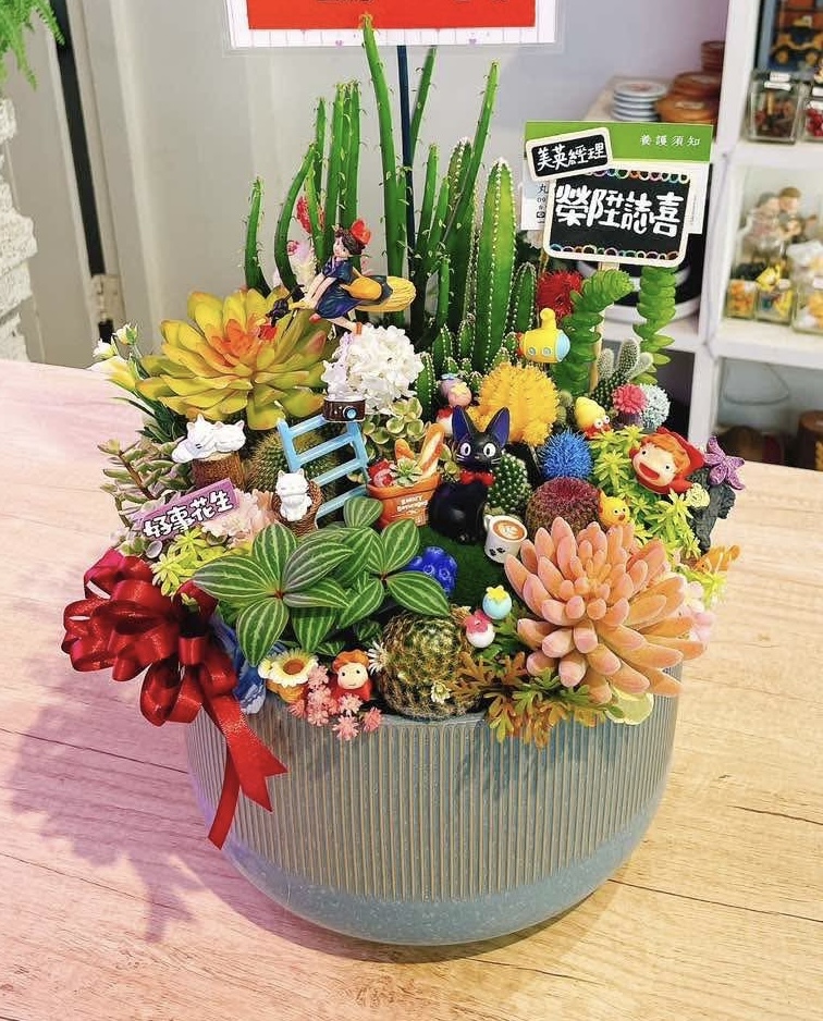► 植物會使用多肉、仙人掌和少許仿真花(仿真花約佔5-10%),也可選擇使用發財樹當主植物。若有特殊要求可在Line告知。