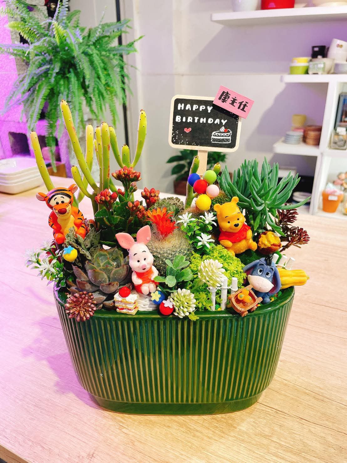 ► 植物會使用多肉、仙人掌和少許仿真花(仿真花約佔5-10%),也可選擇使用發財樹當主植物。若有特殊要求可在Line告知。