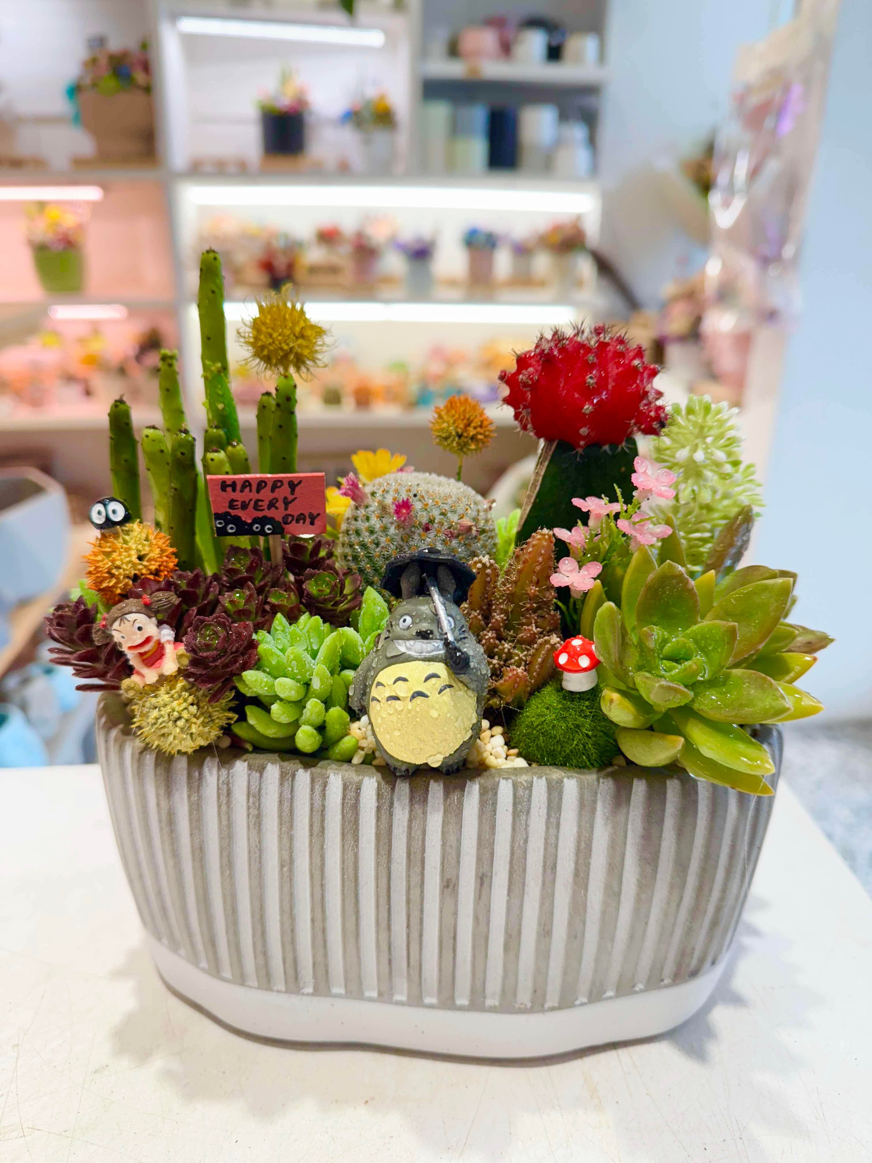 ► 植物會使用多肉、仙人掌和少許仿真花(仿真花約佔5-10%),也可選擇使用發財樹當主植物。若有特殊要求可在Line告知。