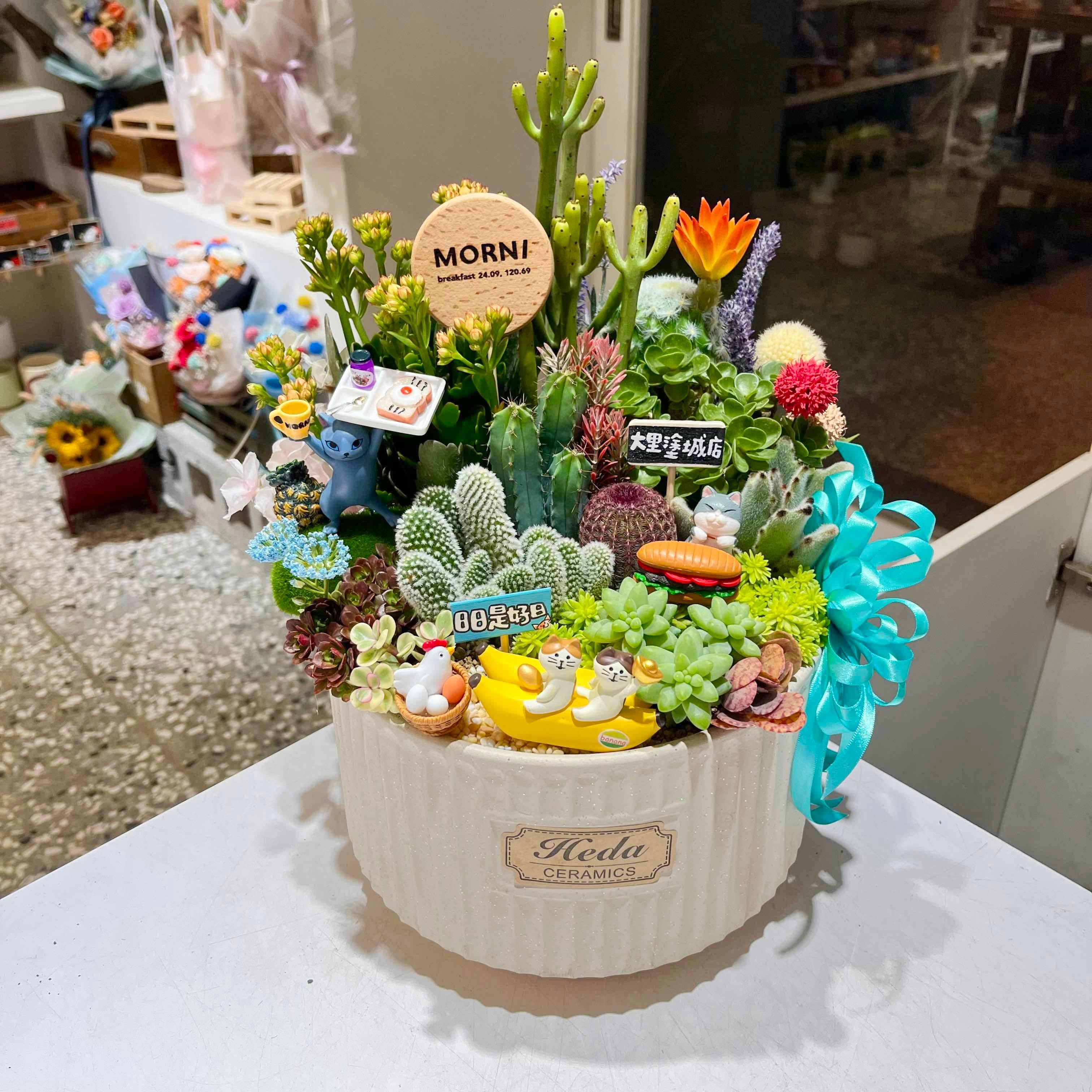 ♦ 附註2. 盆栽售出後不限時間多久,皆可攜回店內重新整理,所有植物裝飾可以自行選擇留用或更換,最終以材料費計價。